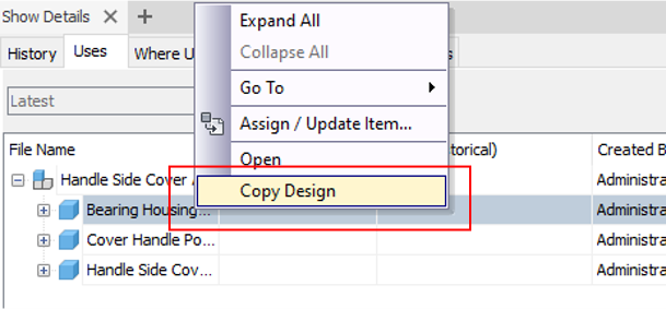 In the Copy Design dialog, right click the file to select the Copy To command to copy the selected files from the main grid to a specified location. Hold the Ctrl key to select multiple files at once.