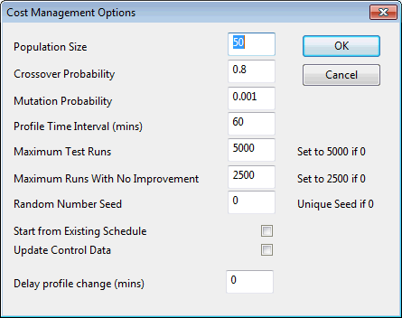 At the end of the optimisation run, the optimiser will re-run the simulation that has given the best schedule and saves the results. If a checked out control has been used and the Update Control Data option has been checked in the Cost Management Options dialog, the checked out Control data will be updated with the pumping schedules from the simulation.