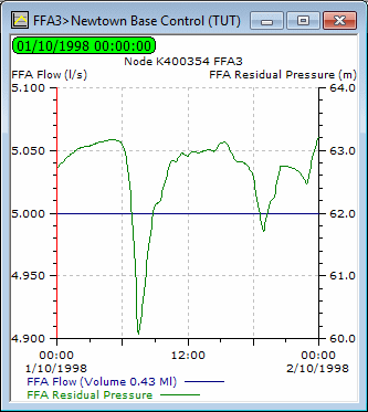 All customer points in the network have a FFA Residual Pressure results field. You can create a graph for an individual customer point as described above.