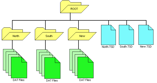 Figure 1 below shows the file and folder structure. For each TSD file there is a sub-folder with the same name (without the .tsd extension). The associated DAT files are stored in this sub-folder.
