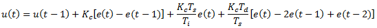 When modelling pump stations or valves as PID controllers, the velocity form of the PID equation is used to calculate the change in regulator position from one sample time to the next.