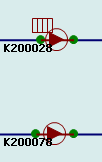Regulators that have UPC scripts have an additional symbol theme "UPC Script Attached". This will show a grid symbol if the object has a UPC script. The image below shows two pump stations, the upper one has a local UPC script: