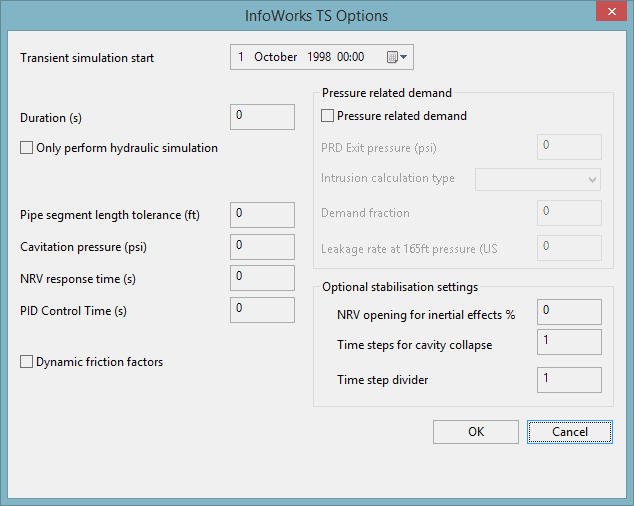 This dialog allows parameters to be set up for an InfoWorks TS simulation.