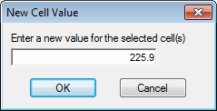 Enter a new value and click OK. This value replaces any existing values in the cells that are currently selected. Click Cancel to abandon the change before it is made.