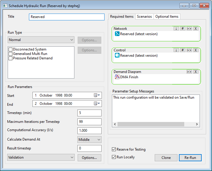 - Validation is turned off when a run is reserved. You can re-enable validation in the run dialog, and validation can always be performed via the network validation dialog. The reason for disabling validation is to improve the throughput of re-runs.