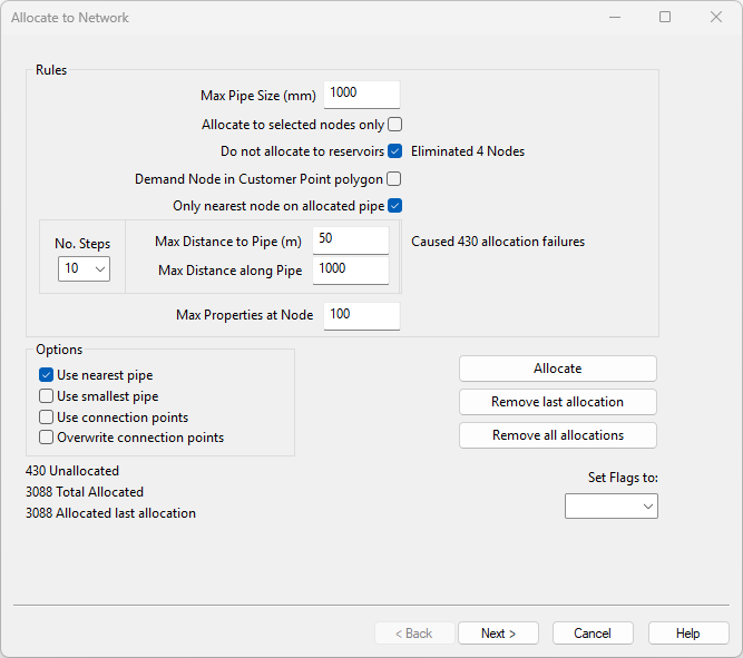 Select a flag from the dropdown list if required. This will flag the Allocated Pipe ID field of successfully allocated points. This can be viewed in the Customer Points Grid or the Customer Point Property Sheet of individual customer points.