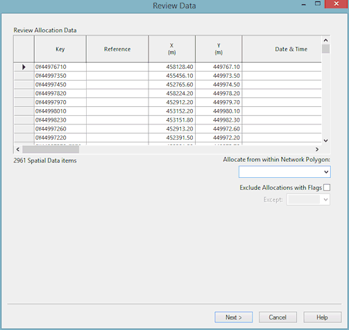 It is also possible to limit the spatial data points that are included by setting a flag. Only spatial data points which have this flag for their Allocated Pipe ID field will be included in the allocation. The flags can be viewed on the Spatial Data Grid.