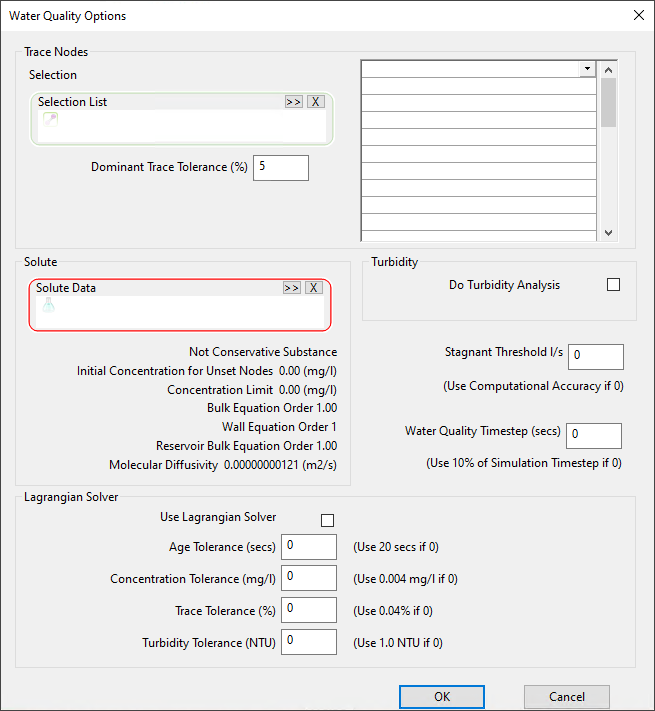 Solute Data object containing the water quality parameters to be used during the simulation.