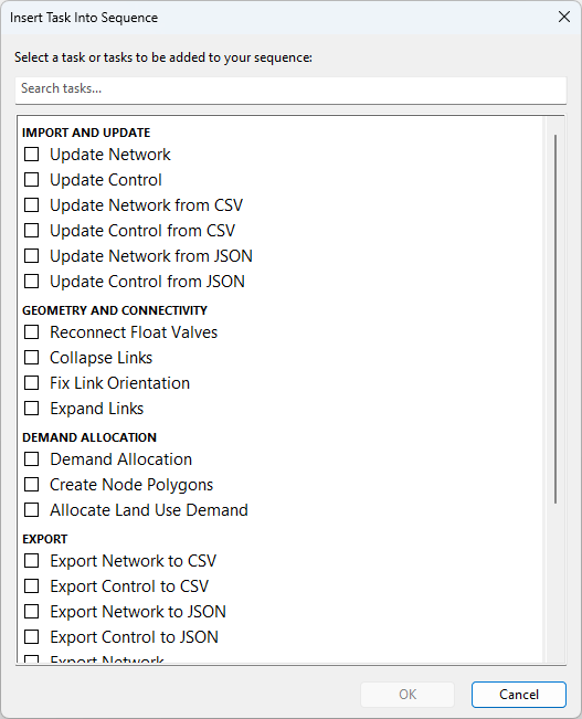 This dialog is displayed when you click the Insert Task button in the Task Sequence editor.