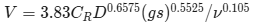 where: CR is the Modeified Hazen-Williams dimensionless roughness factor g is the gravitational constant (9.81 m/s2) s stands for the slope due to friction (head loss per unit length, ΔH/L) v is the kinematic viscosity of the fluid (10-6m2/s) |