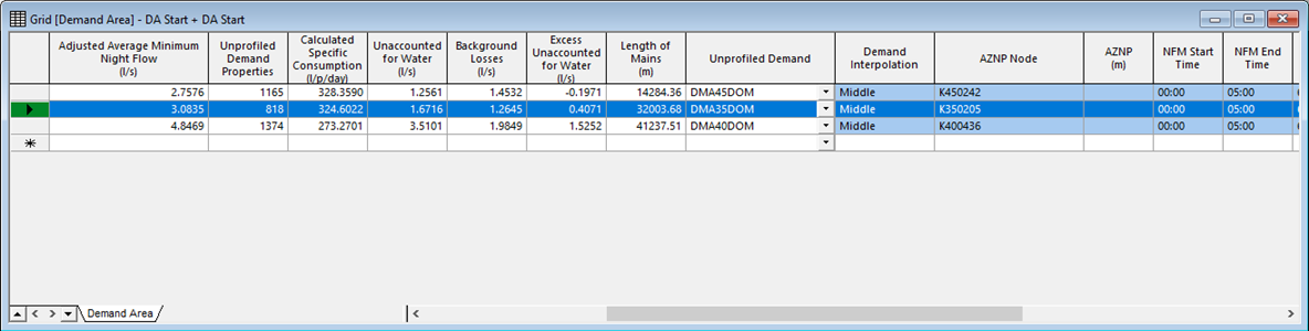 The Demand Area Grid View is used for viewing, editing and analysing Demand Areas.