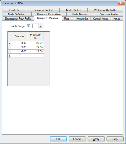 Check the Enable Surge option to model a pressure profile at the node during a transient simulation.