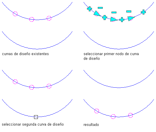 Utilice este procedimiento para mover una curva de diseño de un objeto a otro. El modo de diseño se conserva en esta acción. Si la curva de diseño se ha insertado originalmente con nodos distanciados de forma regular, estos permanecerán distanciados de forma regular en el objeto nuevo.