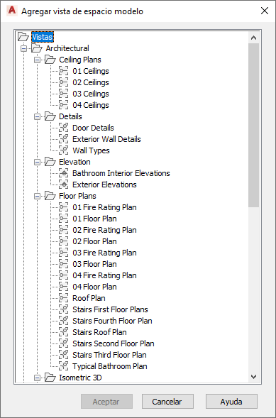 - En el cuadro de diálogo Agregar vista de espacio modelo, seleccione el dibujo de vista de proyecto en el que debe colocarse la vista de espacio modelo y pulse Aceptar.