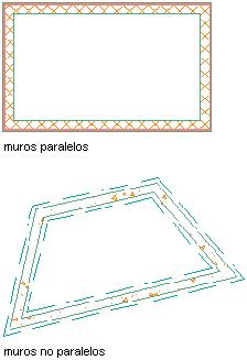 Cuando se utiliza el modo de ubicación Estirar (en paralelo), se mantienen las conexiones de muro si los muros conectados utilizan un radio de círculo de unión de cero. Los muros conectados se recortan, alargan e invierten según sea necesario, a fin de mantener las conexiones y el radio de círculo de unión. Si se utiliza el modo de ubicación Mover, los muros se desconectan.