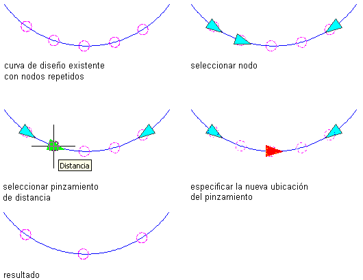 Cambio del espaciado entre nodos de una curva de diseño usando pinzamientos