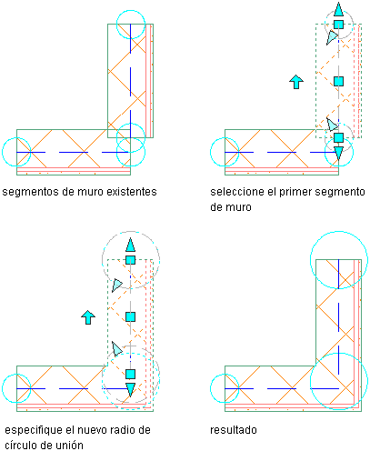 Ajuste del radio de círculo de unión de muro para una unión correcta