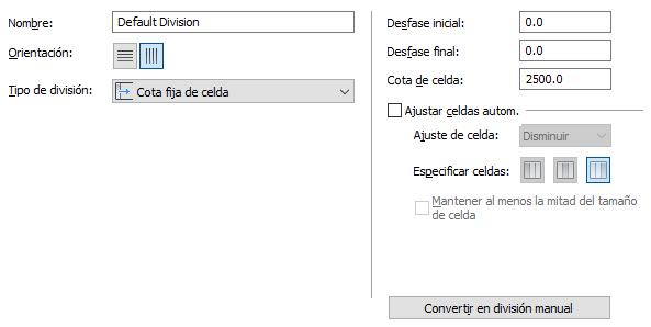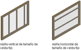 Si va a definir una rejilla vertical, la cota de celda corresponderá a la longitud de la celda de un montante a otro. Si va a definir una rejilla horizontal, la cota de celda corresponderá a la altura de la celda.