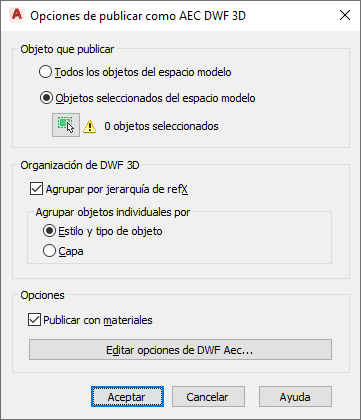 | agrupar los objetos según su referencia externa y por capa | marque Agrupar por jerarquía de refX. En Agrupar objetos individuales por, seleccione Capa. |