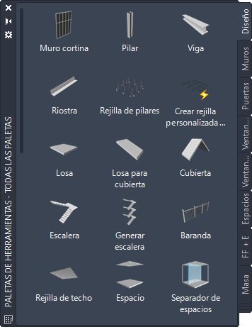 Las paletas personalizadas creadas por el administrador de CAD u otros usuarios también pueden contener herramientas de baranda con estilos y propiedades de baranda personalizados para los proyectos o normas de su oficina.