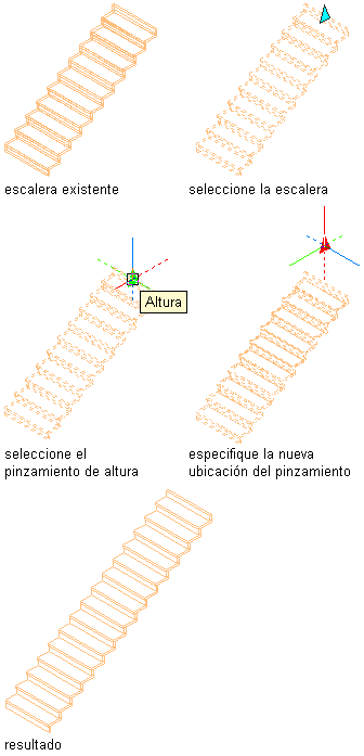Utilice este procedimiento para cambiar la altura de escaleras. También se puede cambiar la altura de escaleras en la paleta Propiedades.