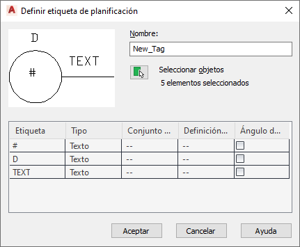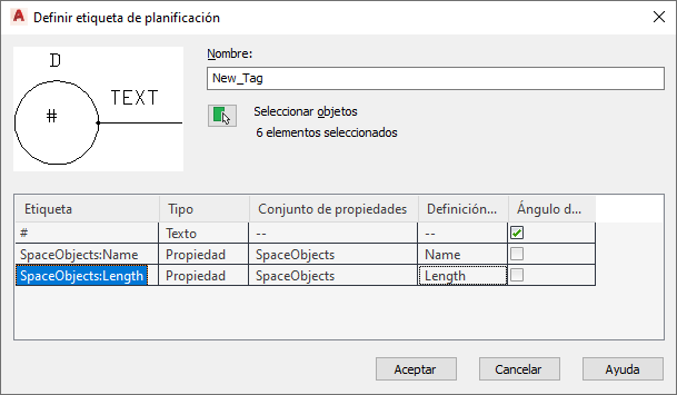 Utilice este procedimiento para crear una etiqueta de planificación que capture y muestre datos de conjuntos de propiedades de un determinado objeto en el dibujo.