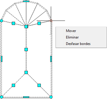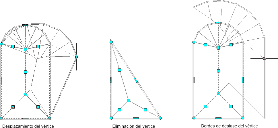 • Eliminar: utilice este modo para eliminar un vértice. Los segmentos adyacentes se reemplazan por un nuevo borde. El nuevo borde hereda las propiedades del número inferior de los dos bordes eliminados.