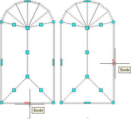 • Agregar vértice: utilice este modo para agregar un vértice al borde seleccionado y crear dos nuevos bordes. Si el borde seleccionado es un arco, los nuevos bordes creados también serán arcos.