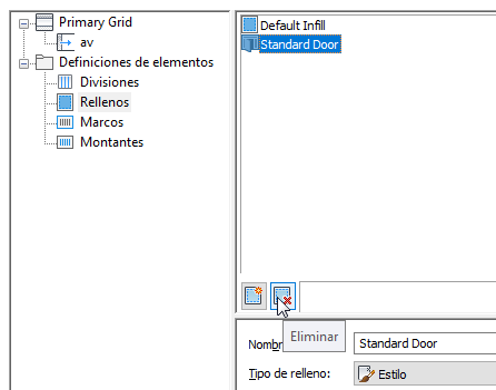 Para eliminar definiciones de relleno de un estilo de conjunto de puerta y ventana