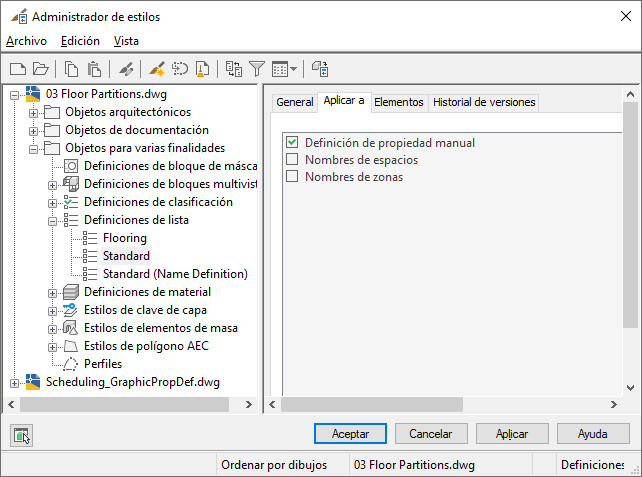 - Pulse en la ficha Aplicar a y seleccione Definición de propiedad manual.