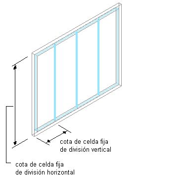 Si va a definir una división vertical, la cota de celda corresponderá a la longitud de la celda de un montante a otro. Si va a definir una división horizontal, la cota de celda corresponderá a la altura de la celda.