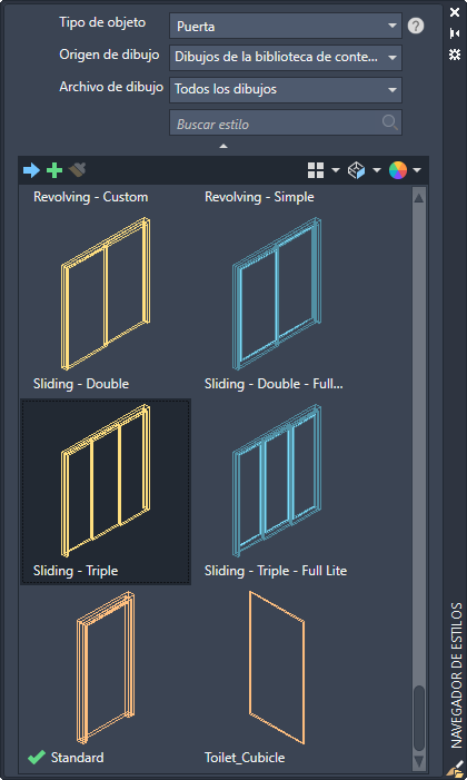 Busca e importa los estilos de objeto en el dibujo actual.