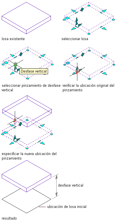 Modificación del desfase vertical de una losa mediante el pinzamiento de desfase vertical