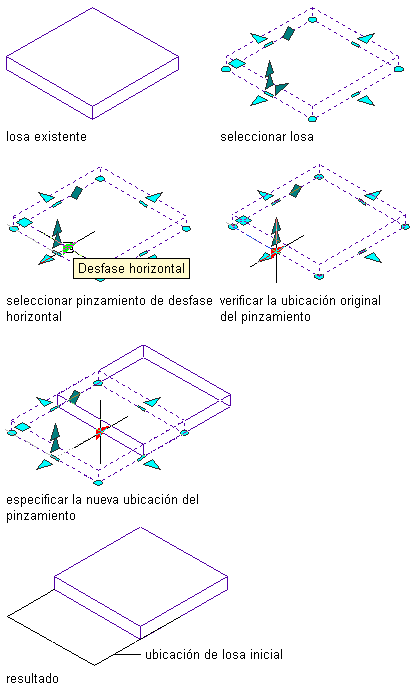 Modificación del desfase horizontal de una losa mediante el pinzamiento de desfase horizontal