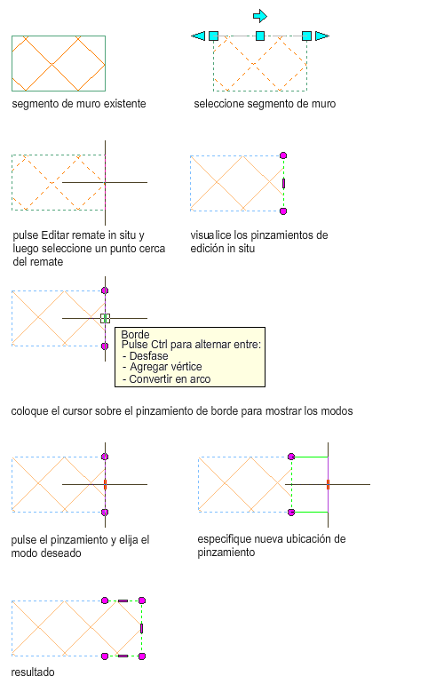 Utilice este procedimiento para modificar un componente de muro con pinzamientos de bordes.