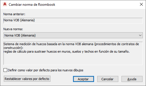 - Si se marca esta opción, la "nueva norma" se utilizará como valor por defecto en todos los dibujos nuevos. Los dibujos existentes mantendrán su norma.