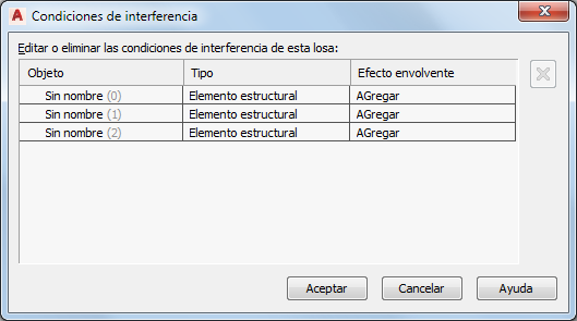 Los objetos que se aplican como condiciones de interferencia en losas y losas para cubierta se pueden modificar del mismo modo que otros objetos, es decir mediante los pinzamientos, las opciones del menú contextual o la paleta Propiedades. Al mover o editar los objetos, la losa o losa para cubierta se actualiza en consonancia. También se puede modificar el parámetro que establece si la condición de interferencia se suma o sustrae del contorno envolvente de la losa o losa para cubierta en vista en planta siguiendo este procedimiento.