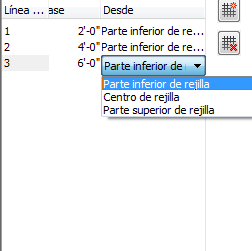 . Inserte tantas líneas de rejilla como necesite. Si tiene que eliminar una línea de rejilla, selecciónela en la tabla y luego pulse