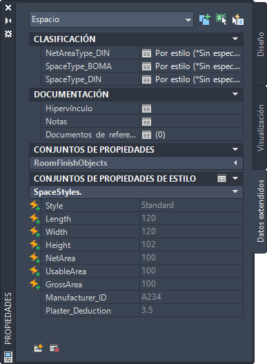 - En la paleta Propiedades, seleccione la ficha Datos extendidos.