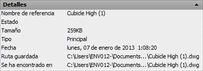 - El tamaño muestra el tamaño de archivo del dibujo seleccionado.
