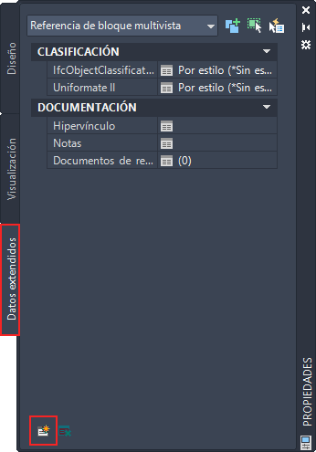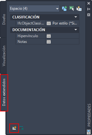 - En la paleta Propiedades, en la ficha Datos extendidos, haga clic en Agregar conjuntos de propiedades.