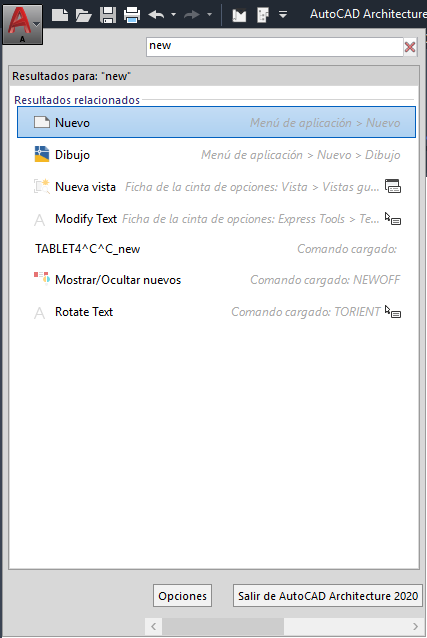 En el menú de la aplicación, puede buscar un comando y, a continuación, seleccionarlo en la lista de resultados. Los resultados de la búsqueda se obtienen de las siguientes ubicaciones: