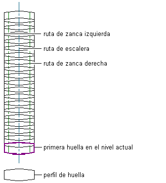 Las líneas y los perfiles de escaleras personalizadas pueden representar los componentes siguientes: