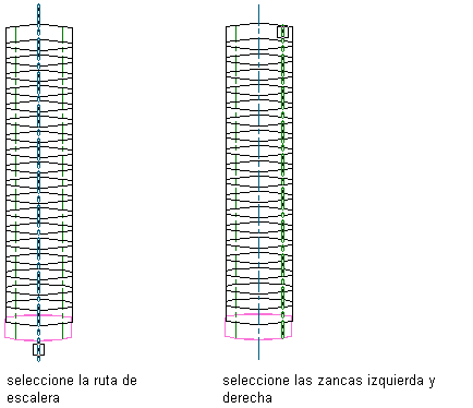 Líneas. Para la ruta de escalera solo se pueden seleccionar polilíneas de poco grosor de uno o varios segmentos, o segmentos de arco que intersequen todas las huellas.