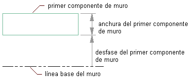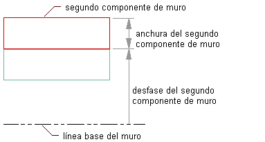 Nota: No defina componentes de muro con desfases de alzado por encima del valor indicado en Parte superior de muro o por debajo del valor de Parte inferior de muro. Los muros con componentes definidos de esta manera no se unen correctamente y puede que no se muestren bien si edita su línea de cubierta o de suelo. Para evitar problemas de unión y visualización, puede definir los componentes del muro con desfases de alzado por encima del valor indicado en Altura base o por debajo del valor de Línea base.