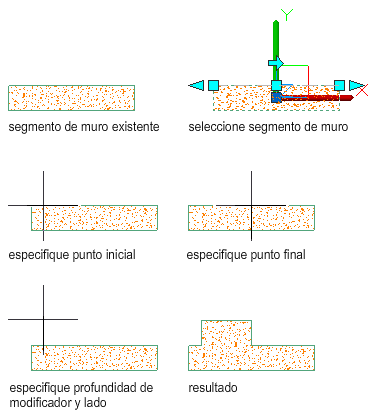 Utilice este procedimiento para agregar modificadores de muro de un estilo existente a muros. El modificador se puede aplicar a uno o ambos lados del muro o el componente. Los lados izquierdo y derecho del muro se determinan desde los puntos inicial y final del mismo.