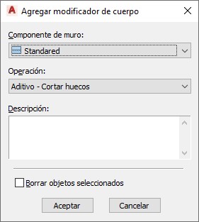Se puede crear un modificador de cuerpo a partir de un elemento de masa, un grupo de masas o cualquier otro objeto AEC con masa. También pueden crearse modificadores de este tipo a partir de sólidos ACIS o bloques que forman cuerpos 3D. Es necesario colocar el objeto en la ubicación deseada en el dibujo antes de definirlo como modificador de cuerpo.