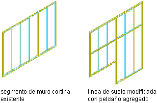 Modificación de la línea de suelo de un muro cortina añadiendo un paso