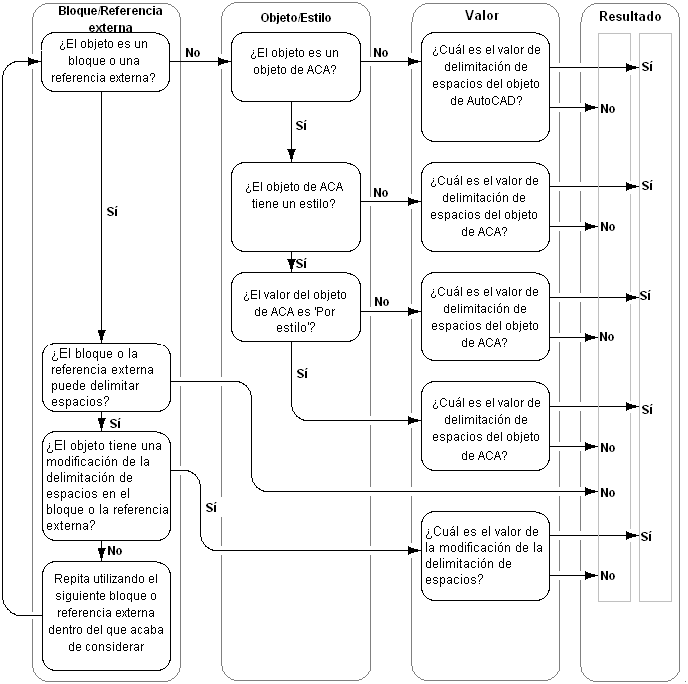 A partir de AutoCAD Architecture 2009, ha cambiado el mecanismo de definición de los objetos como objetos de contorno para los espacios. En las versiones anteriores, los objetos se seleccionaban aplicando un filtro de objeto durante la generación de espacios. En Conjunto de herramientas AutoCAD Architecture 2027, cada objeto tiene su propiedad Delimitar espacios en la paleta Propiedades o en el estilo de objeto y se puede definir en esa ubicación como objeto de contorno.