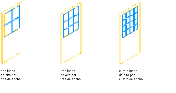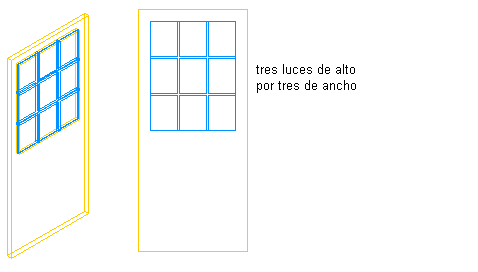 Vidrio de puerta rectangular con montantes secundarios rectangulares